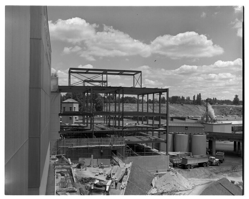 Negative, sheet film. 4 x 5 b&w. No. 6716. Brewing Prog. Construction of C brewhouse.