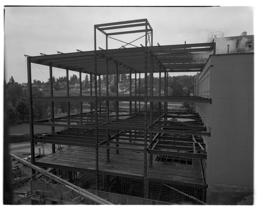 Negative, sheet film. 4 x 5 b&w. No. 6716. Olympia Brewery Progress. Construction of C brewhouse.