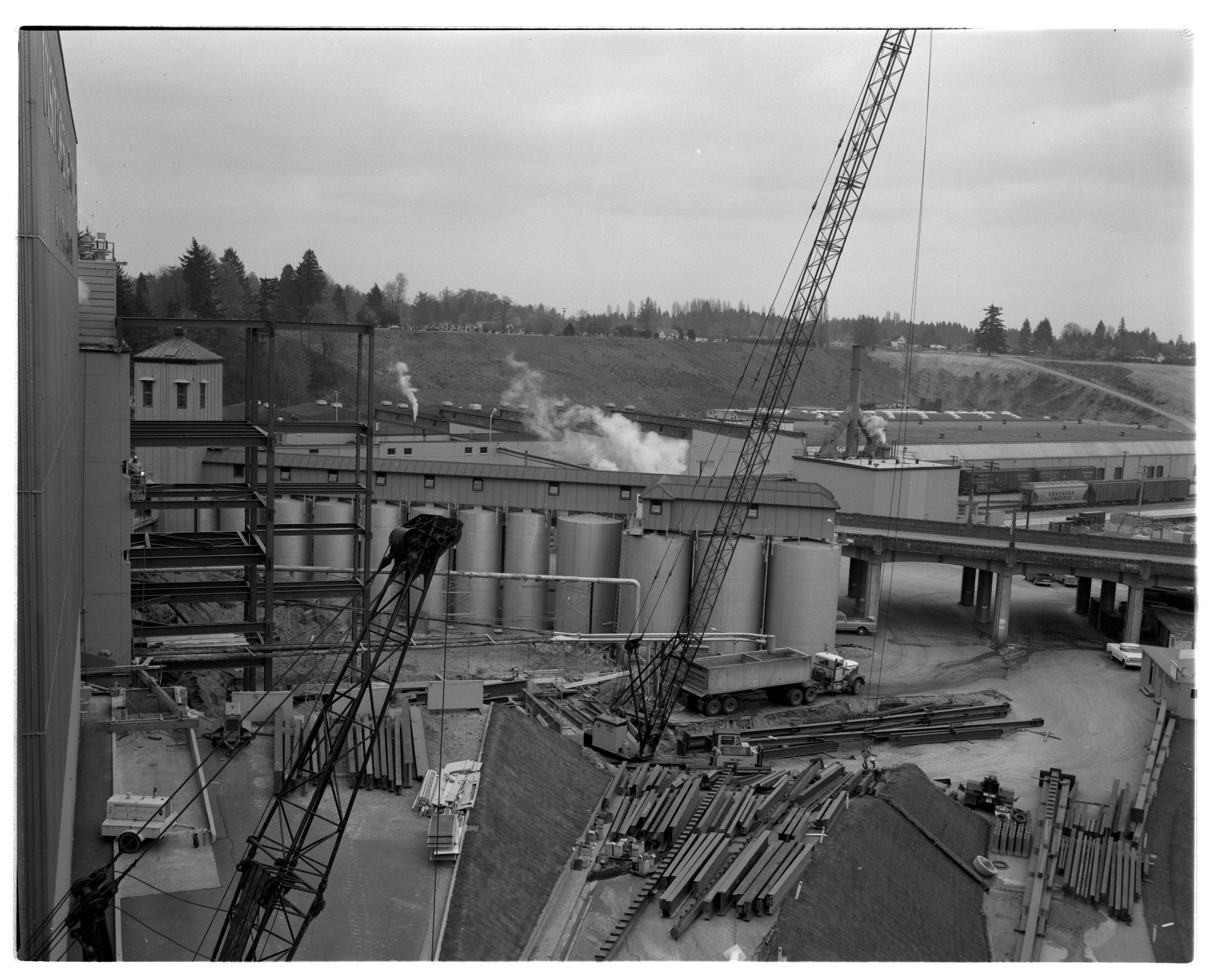 Negative, sheet film. 4 x 5 b&w. No. 6716. Brewery Progress. Construction of C brewhouse.