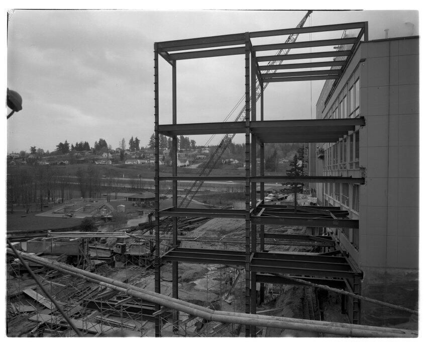 Negative, sheet film. 4 x 5 b&w. No. 6716. Brewery Progress. Construction of C brewhouse.