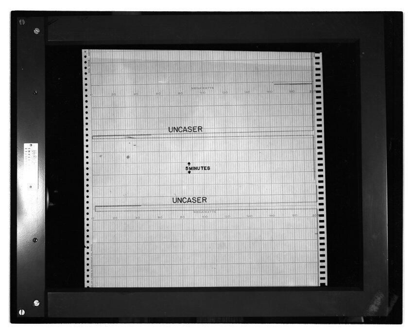 Negative, sheet film. 4 x 5 b&w. No. 2897. Olympia brewery. Ordered 06/06/1960 by Skip Schmidt. Photos of gauges, charts, and office equipment for lantern slides.