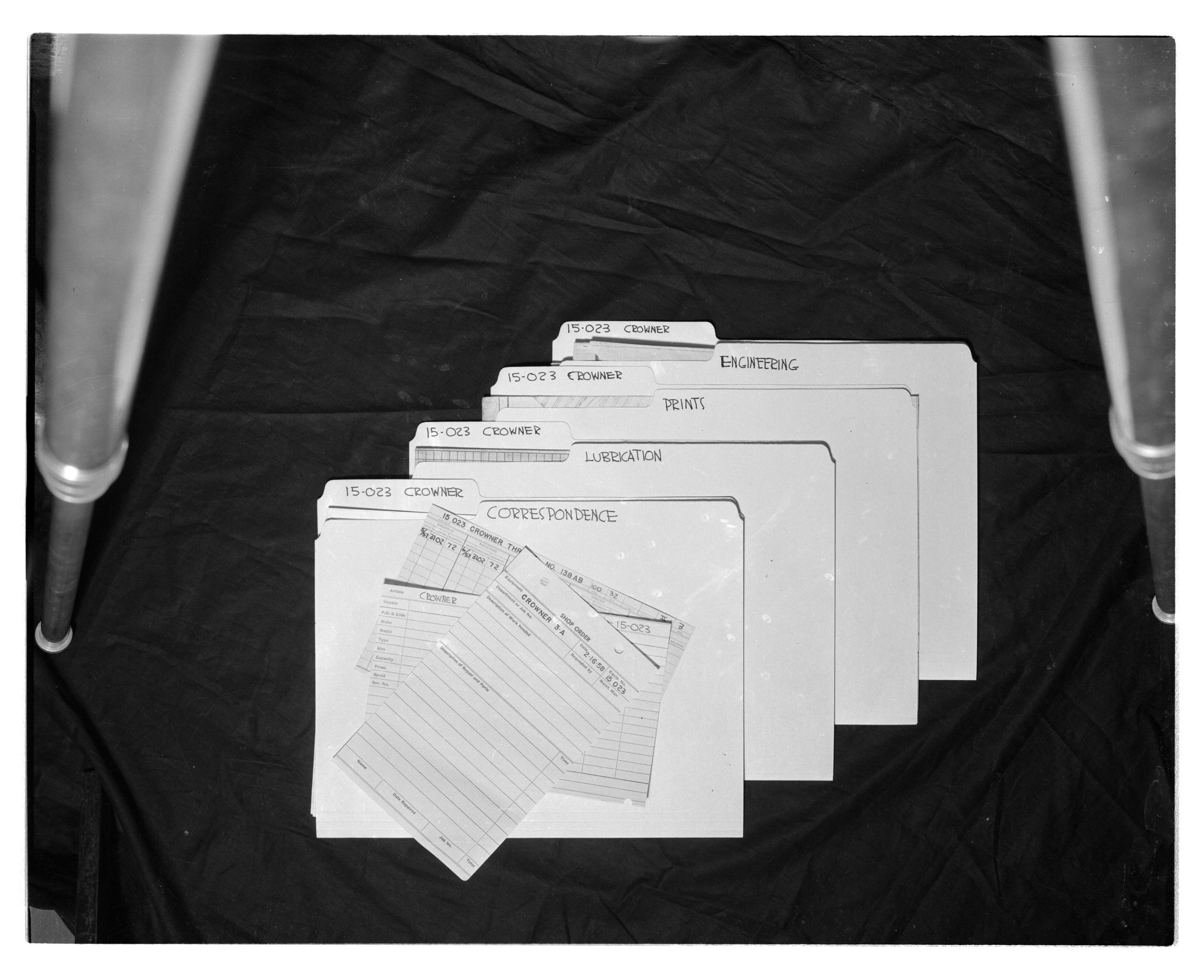Negative, sheet film. 4 x 5 b&w. No. 2897. Olympia brewery. Ordered 06/06/1960 by Skip Schmidt. Photos of gauges, charts, and office equipment for lantern slides.