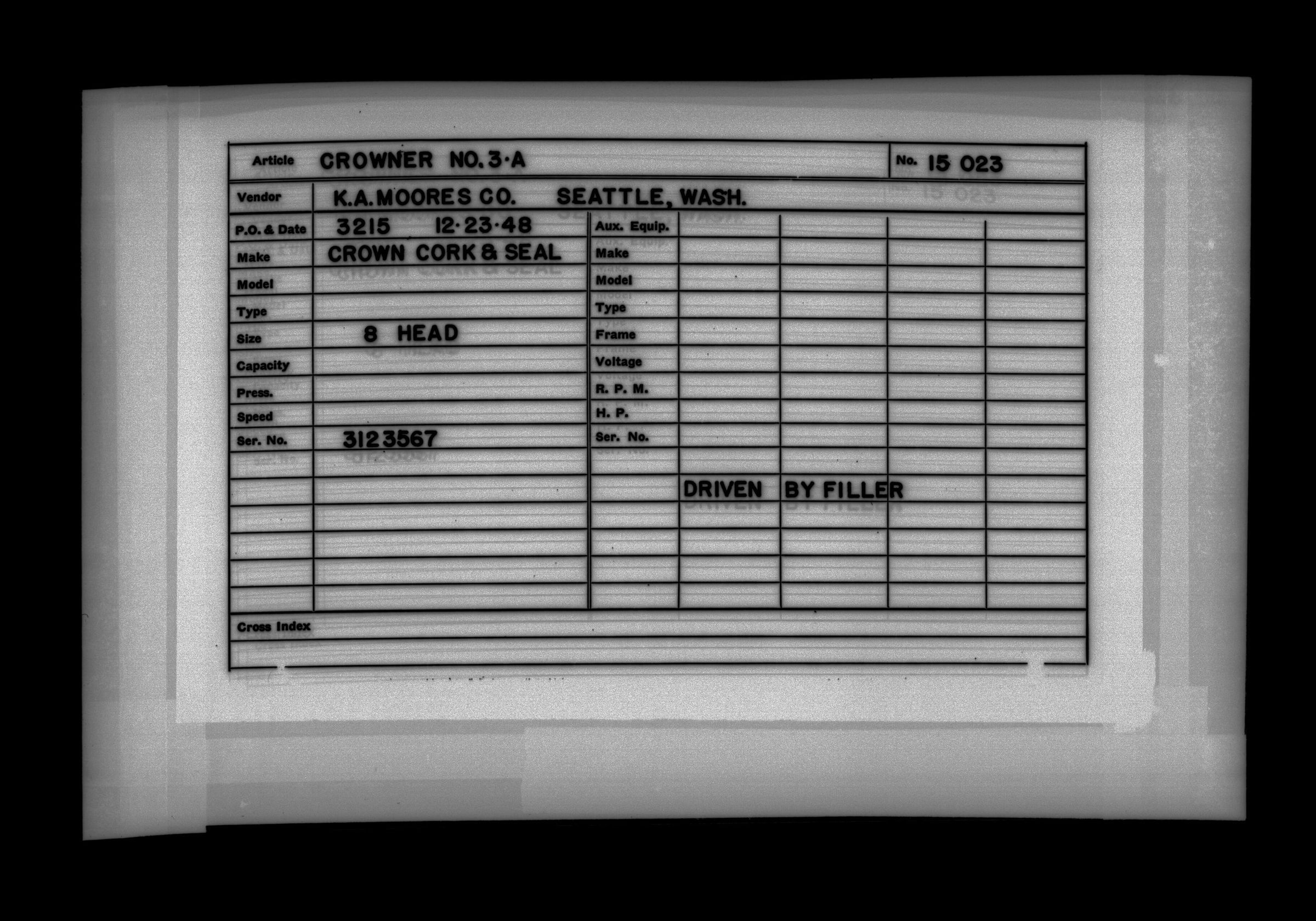 Negative, sheet film. 4 x 5 b&w. No. 2897. Olympia brewery. Ordered 06/06/1960 by Skip Schmidt. Photos of gauges, charts, and office equipment for lantern slides.