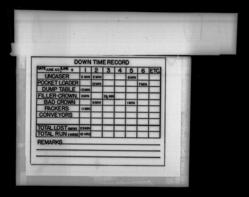 Negative, sheet film. 4 x 5 b&w. No. 2897. Olympia brewery. Ordered 06/06/1960 by Skip Schmidt. Photos of gauges, charts, and office equipment for lantern slides.