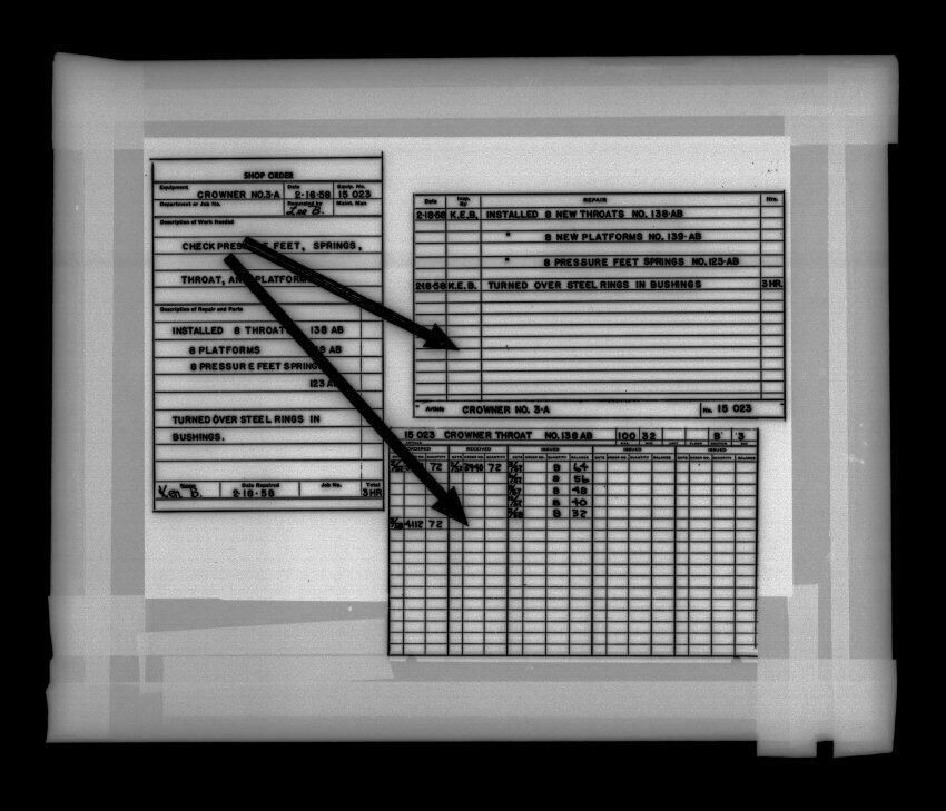 Negative, sheet film. 4 x 5 b&w. No. 2897. Olympia brewery. Ordered 06/06/1960 by Skip Schmidt. Photos of gauges, charts, and office equipment for lantern slides.