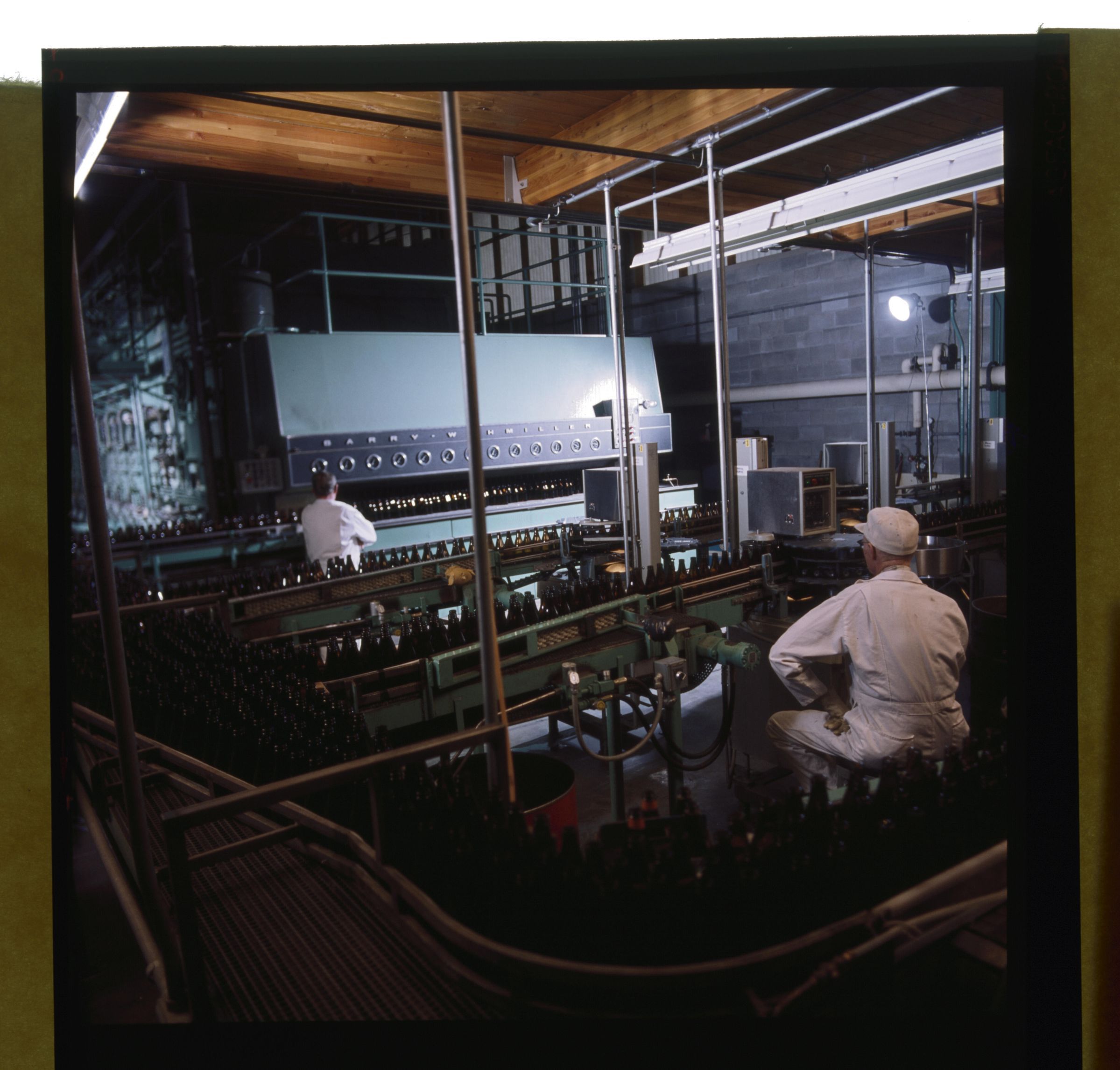Negative, sheet film. 2 x 2 postive. Bottle washer at Oly brewery.