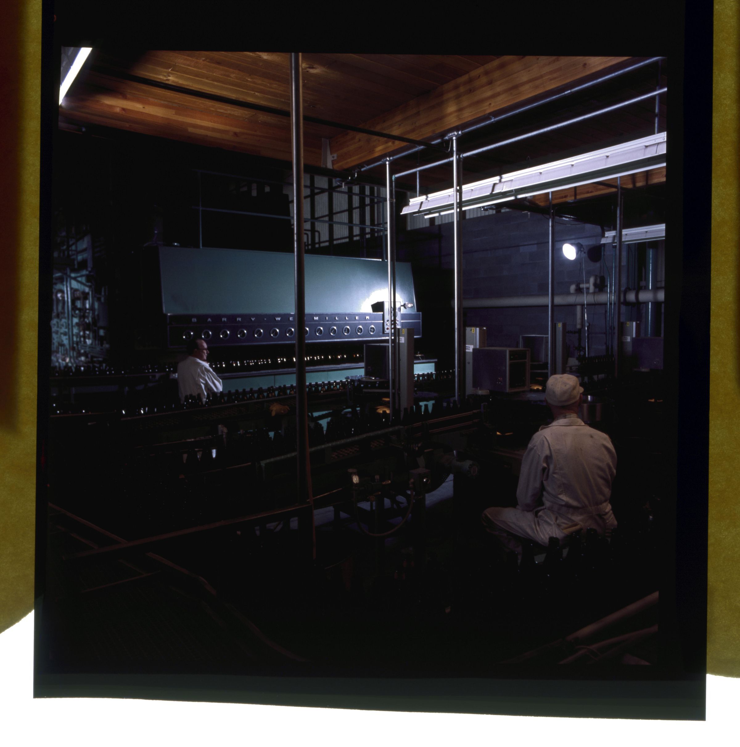 Negative, sheet film. 2 x 2 postive. Bottle washer at Oly brewery.