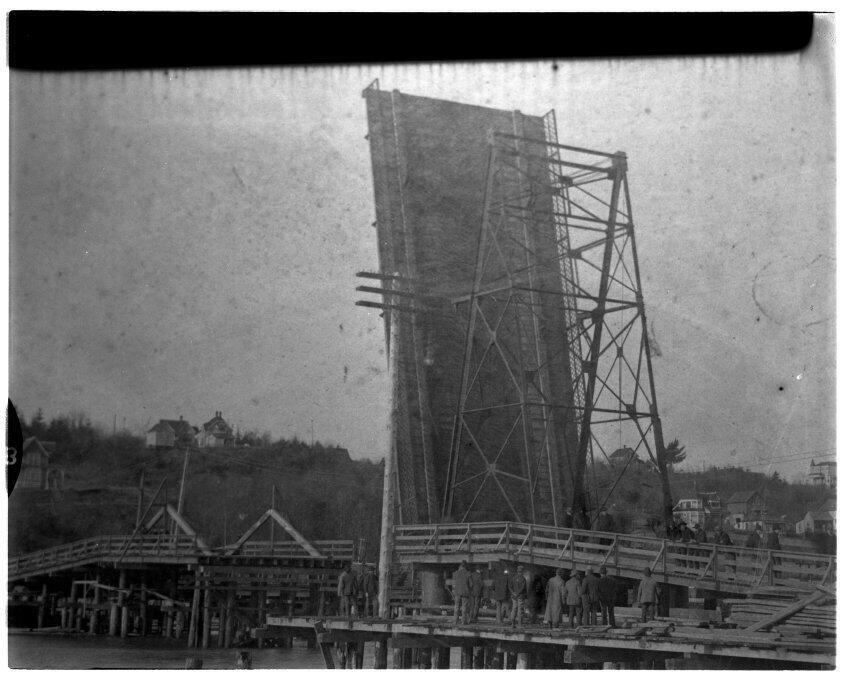 Negative, sheet film. 4 x 5 b&w. Raised 4th Avenue bridge in Olympia.