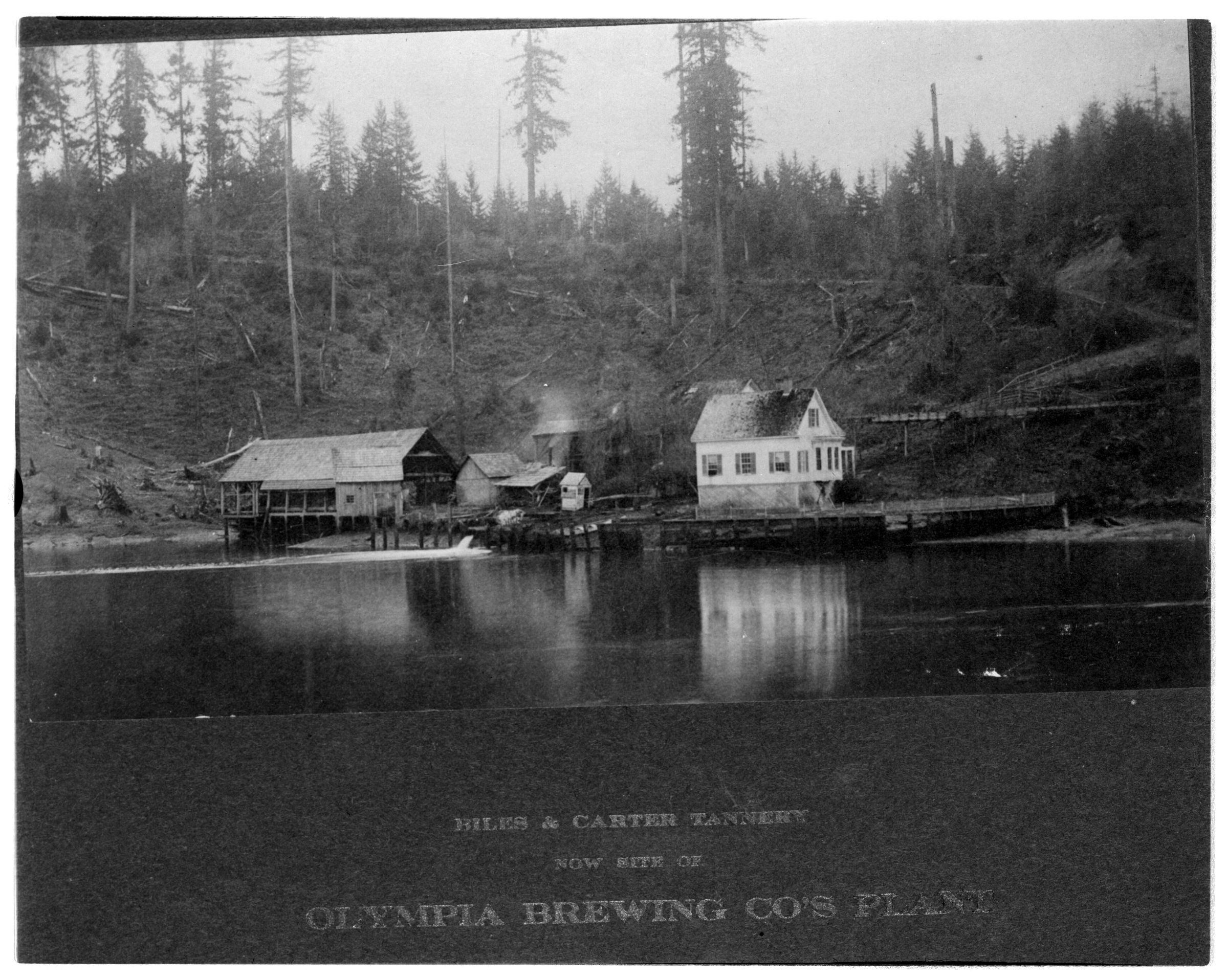 Negative, sheet film. 4 x 5 b&w. Biles and Carter Tannery, which occupied land purchased by Leopold Schmidt for site of Capital Brewing Company (later Olympia Brewing).