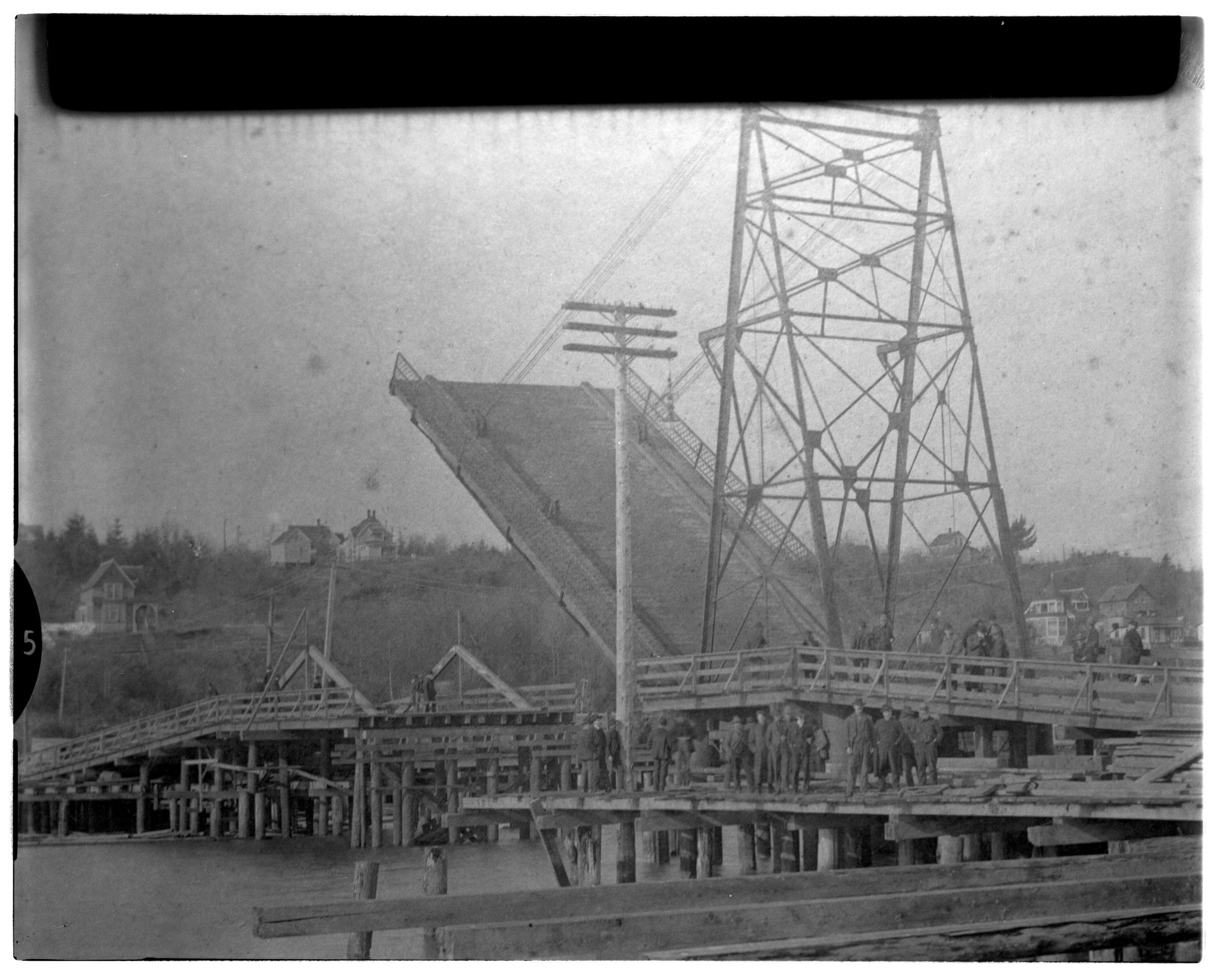 Negative, sheet film. 4 x 5 b&w. Fourth Avenue drawbridge in Olympia.