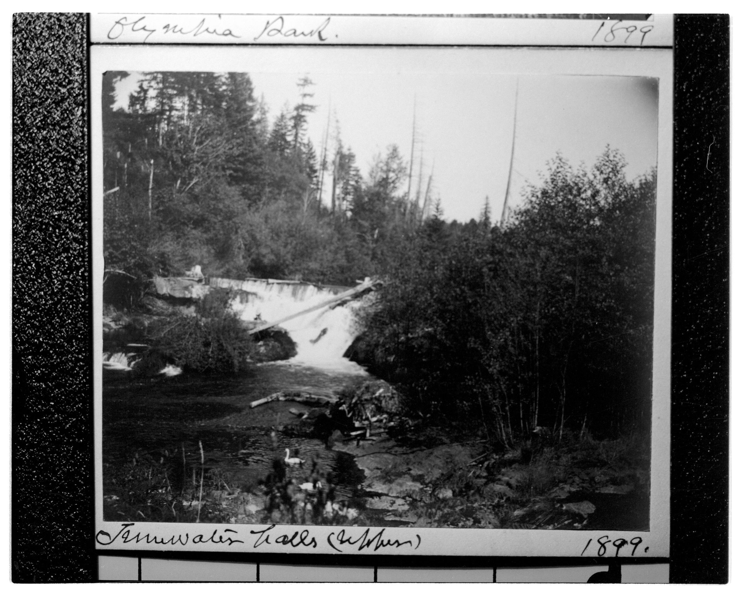 Negative, sheet film. 4 x 5 b&w. Upper falls of the Deschutes River.