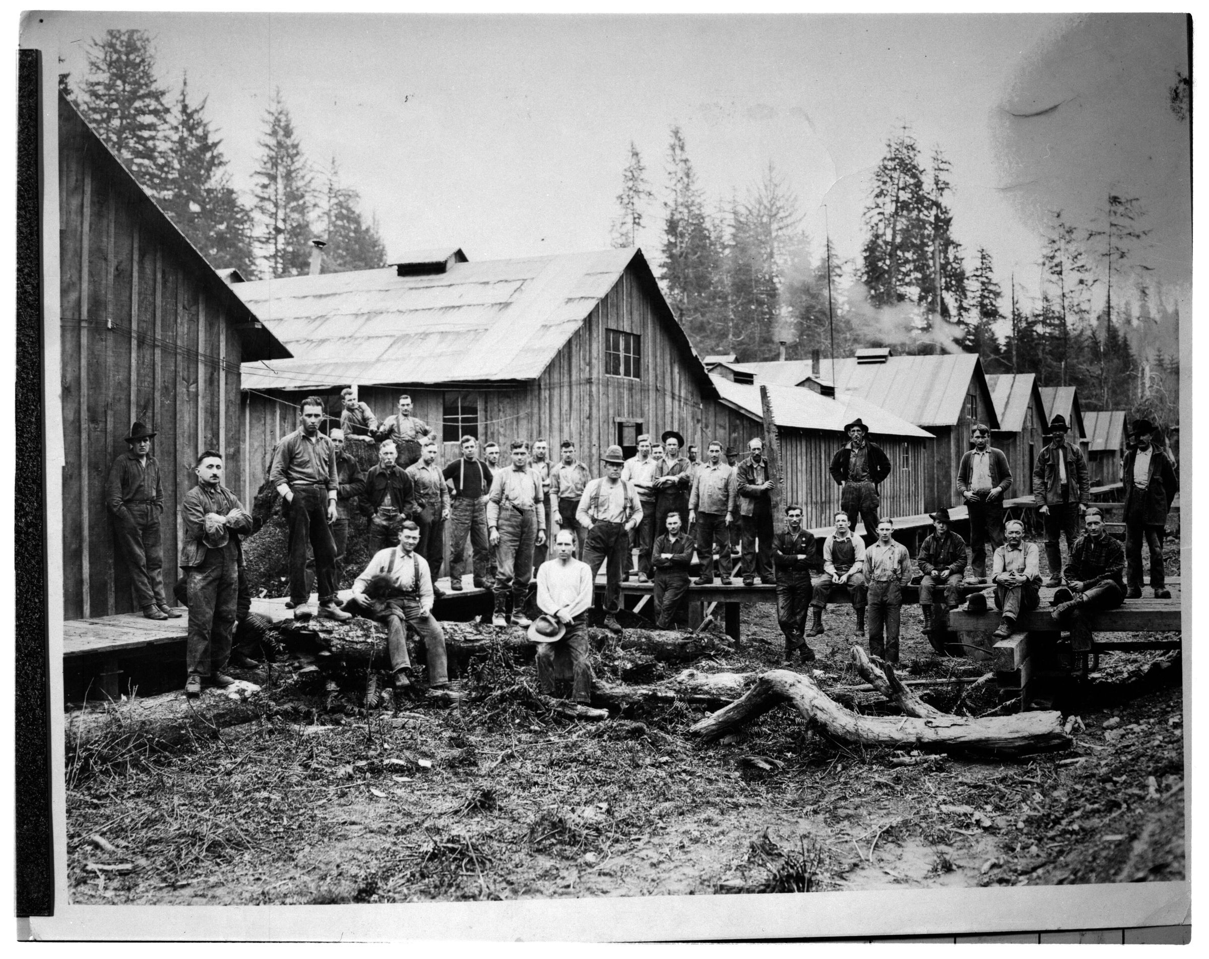 Negative, sheet film. 4 x 5 b&w. Tumwater 30. Logging camp, unknown location.
