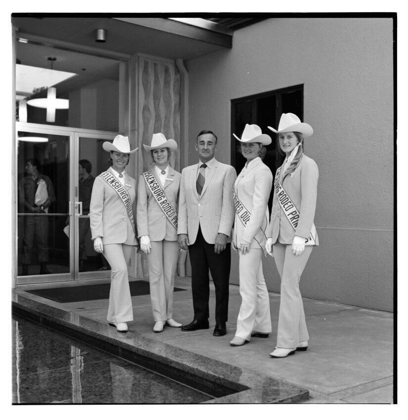 Negative, sheet film. 2 x 2 b&w. No. 1450. OB Corp TV. Ellensburg Rodeo Queens with Bink Schmidt.