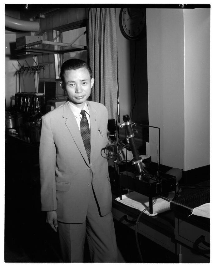 Negative, sheet film. 4 x 5 b&w. No. 822. OB Corp TV. Jee Fu (Jeffery) Huang, Formosa brewmaster.