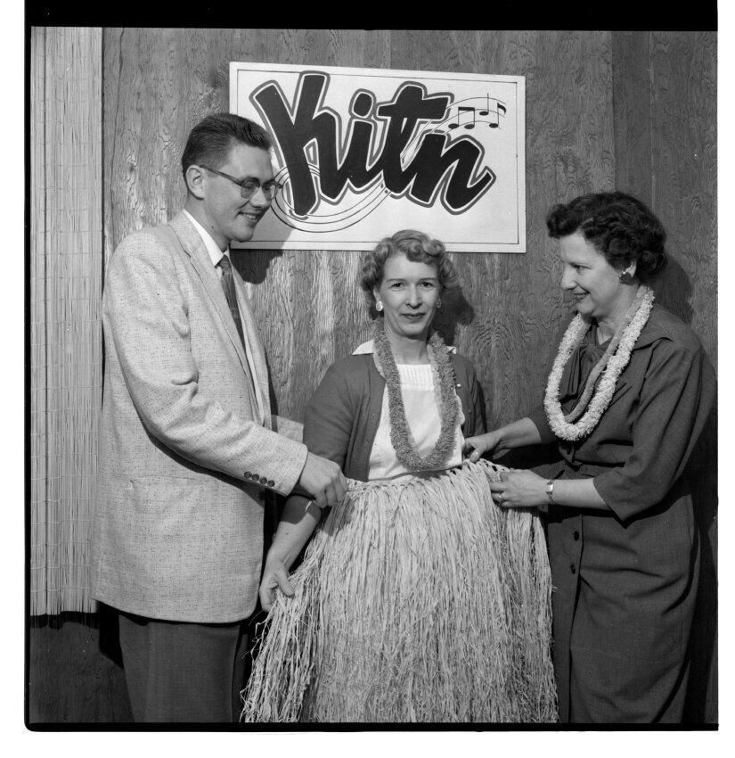 Negative, sheet film. 2 x 2 b&w. No. 524. OB Corp TV. KITN radio, Minnesota, unknown location.