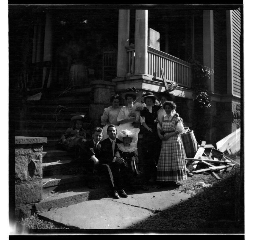 Negative, sheet film. 3 x 3 b&w. Unknown location. No ID on people.