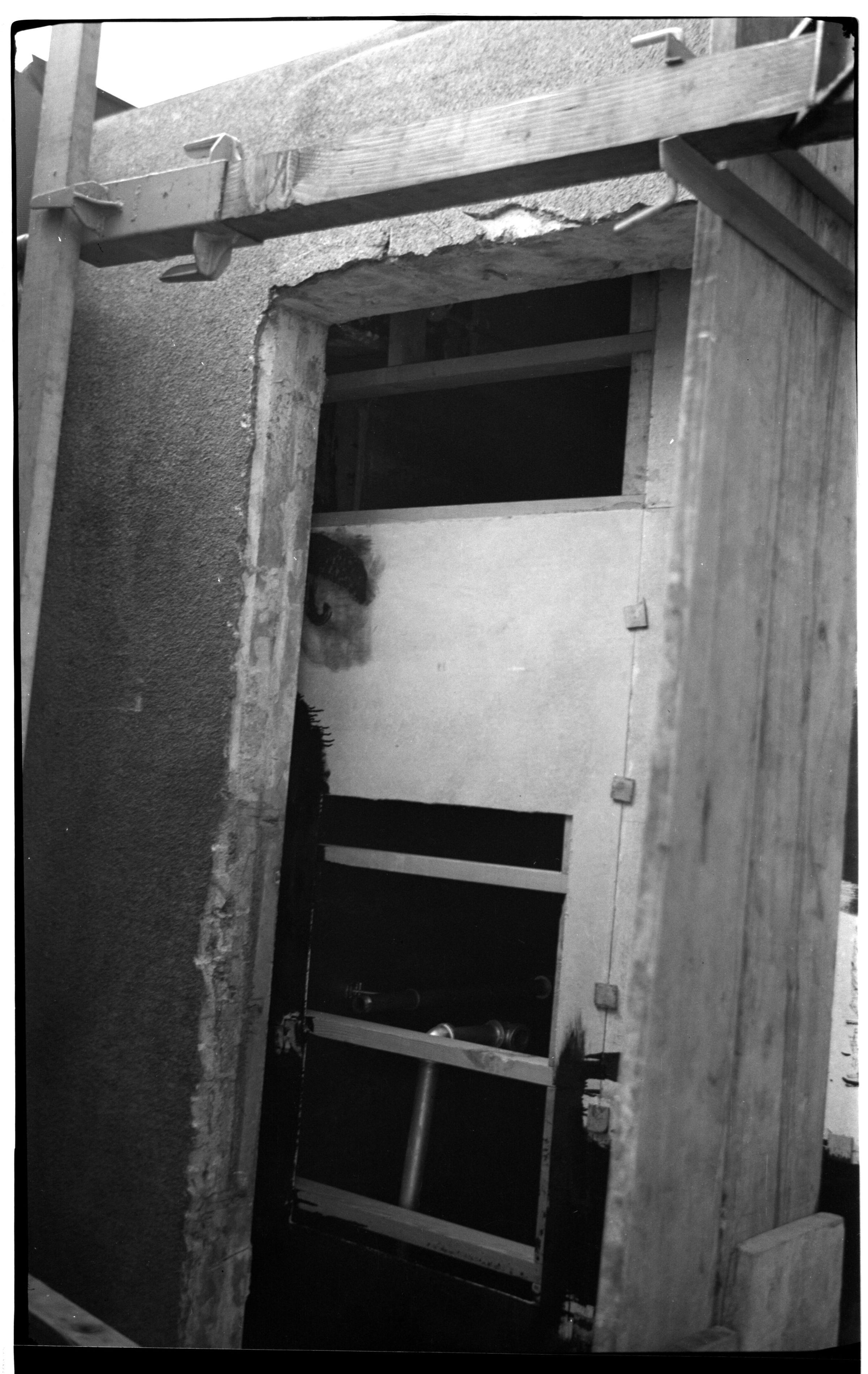 Negative, sheet film. 3.5 x 2 b&w. J Cellar. Loading Dock.