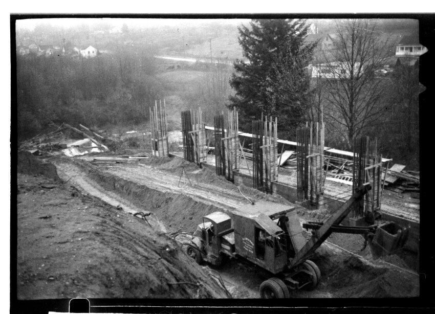 Negative, sheet film. 1 x 1.6 b&w. Building M Cellar at Olympia Brewing Company.