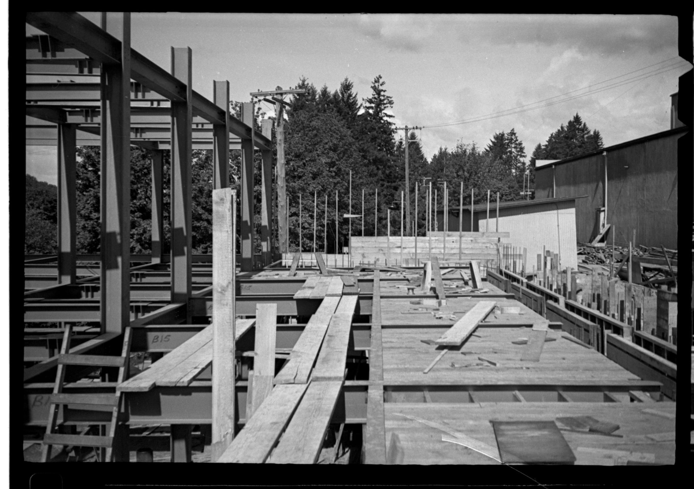 Negative, sheet film. 1 x 1.6 b&w. Building M Cellar at Olympia Brewing Company.