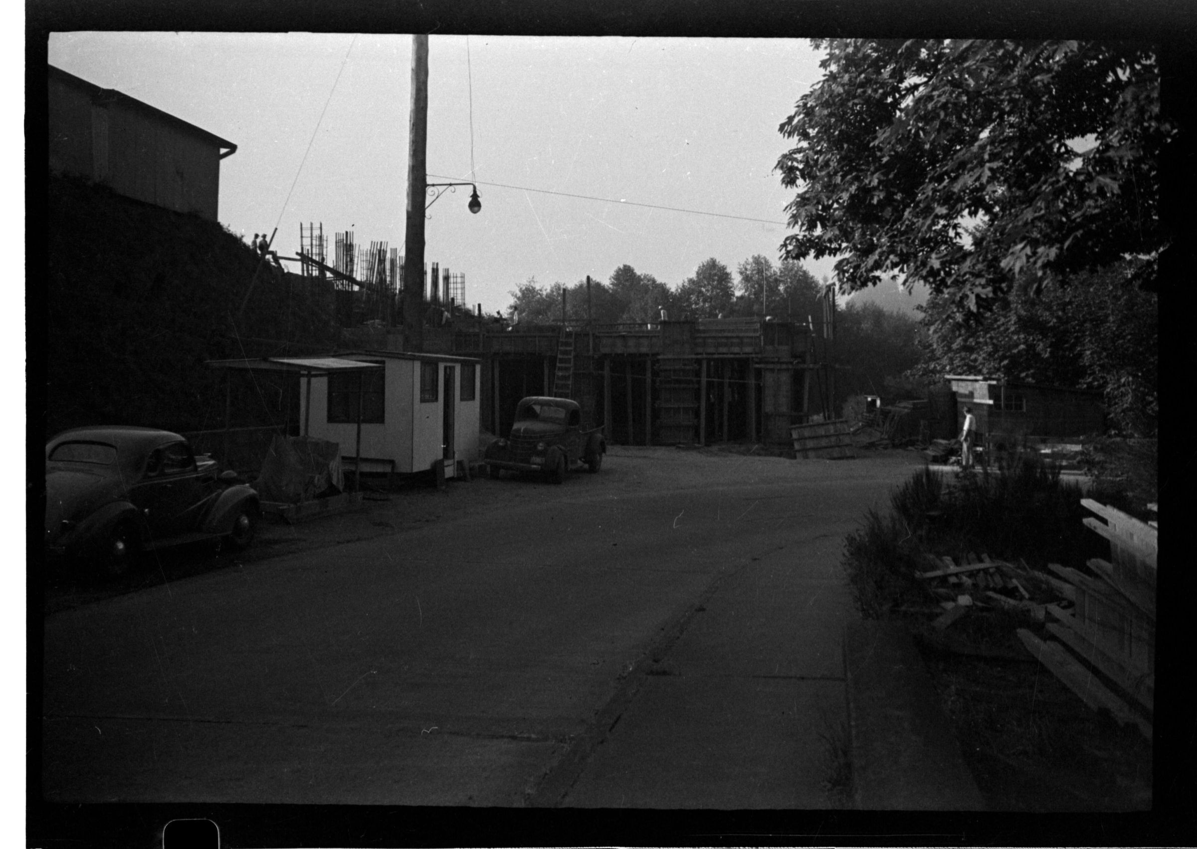 Negative, sheet film. 1 x 1.6 b&w. Building M Cellar at Olympia Brewing Company.