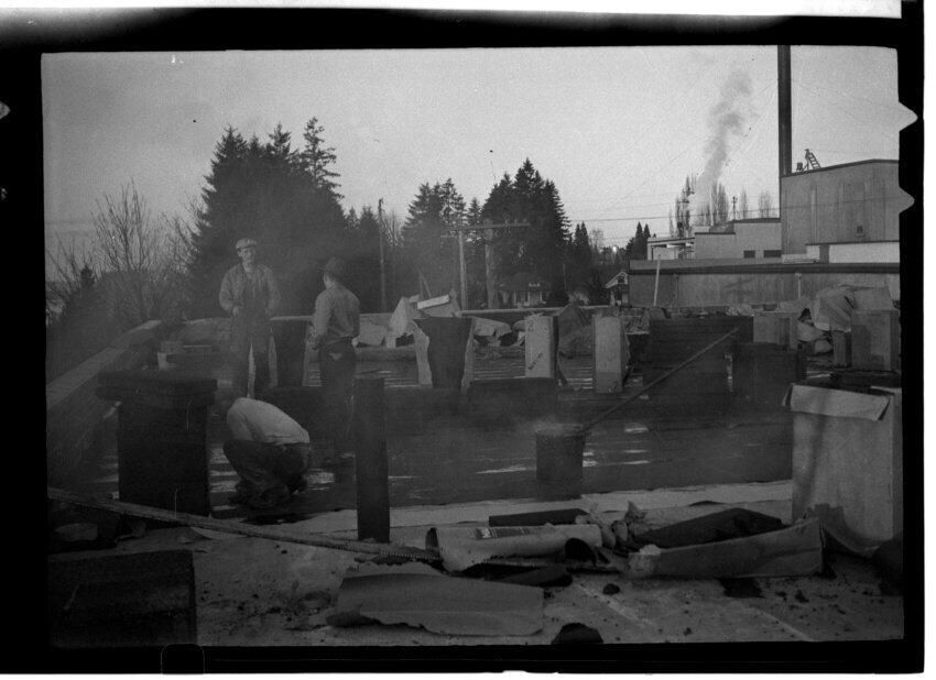 Negative, sheet film. 1 x 1.6 b&w. Building M Cellar at Olympia Brewing Company.