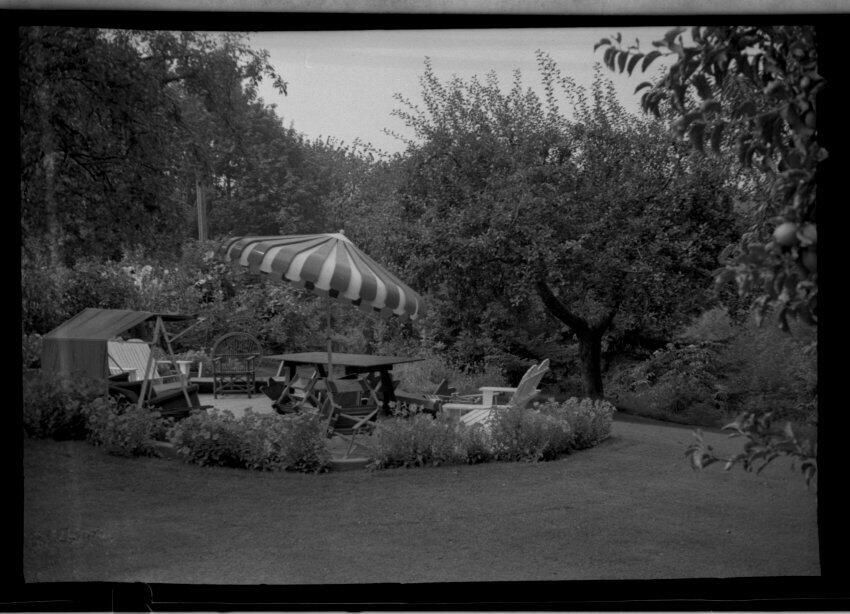 Negative, sheet film. 1 x 1.5 b&w. Circular patio in back yard of Schmidt House.