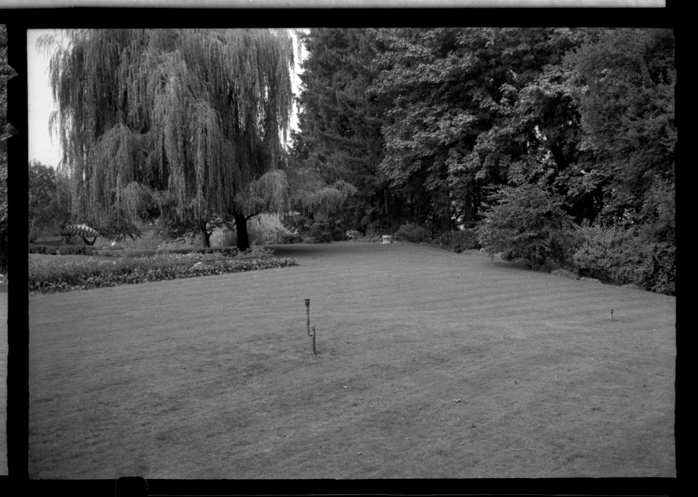Negative, sheet film. 1 x 1.5 b&w. Back yard of Schmidt House, looking northwest.