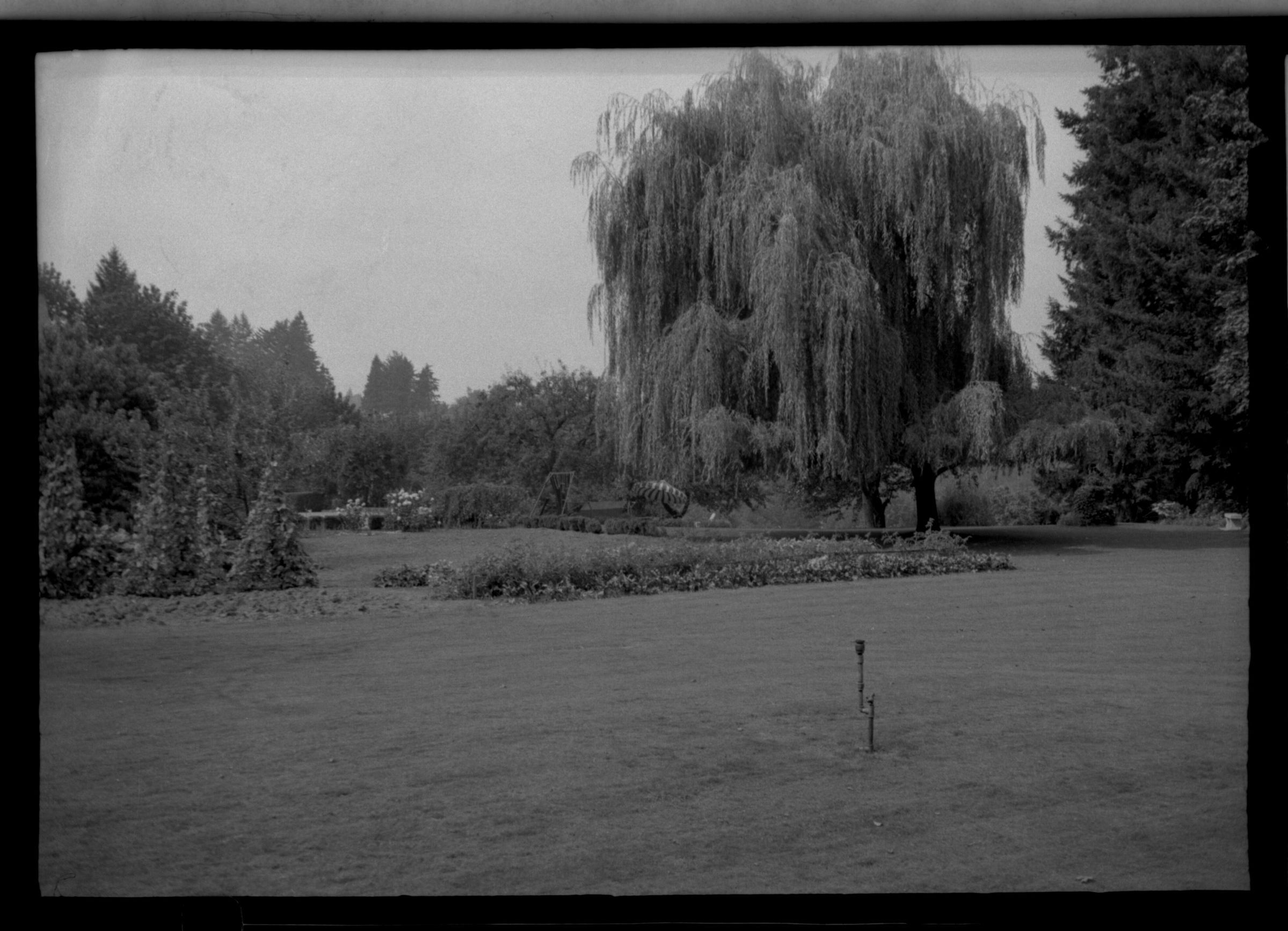 Negative, sheet film. 1 x 1.5 b&w. Back yard of Schmidt House, looking northwest.