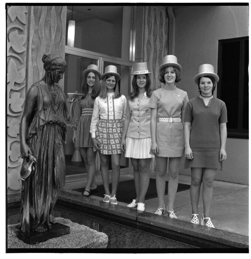 Negative, sheet film. 2 x 2 b&w. No. 1427. OB Corp TV. Port Townsend Princesses visit the Olympia brewery.