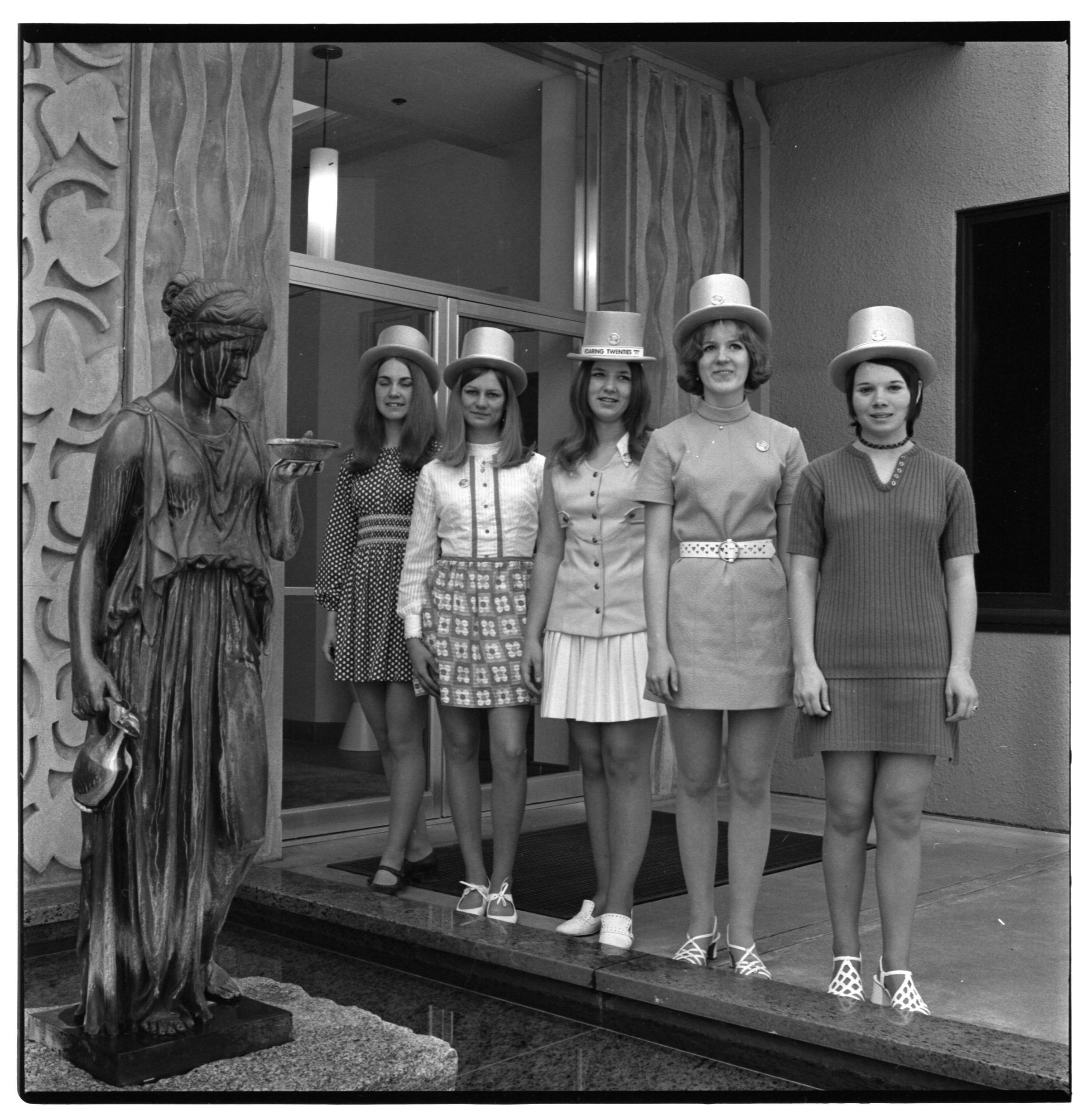 Negative, sheet film. 2 x 2 b&w. No. 1427. OB Corp TV. Port Townsend Princesses visit the Olympia brewery.