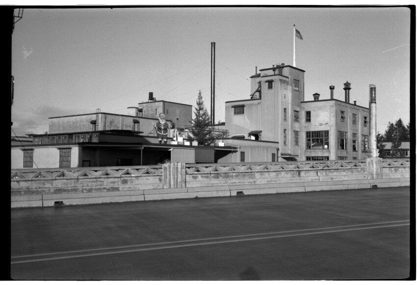 Negative, sheet film. 2 x 3 b&w. Olympia brewery from Carlyon Bridge, looking northwest.