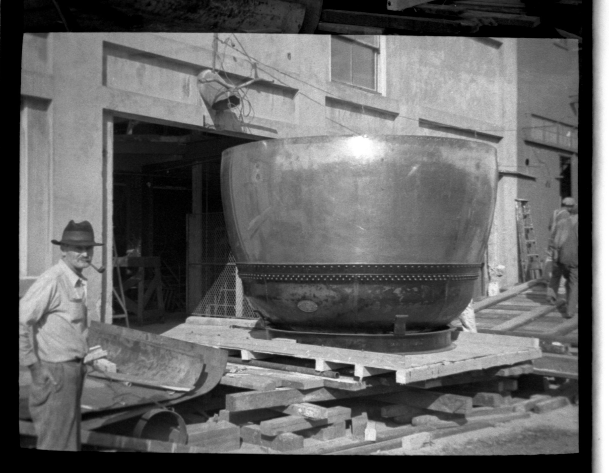 Negative, sheet film. 1 x 1.5 b&w. Equipment being moved into Salem brewery.