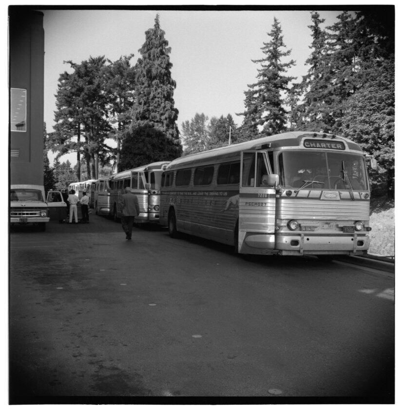 Negative, sheet film. 2 x 2 b&w. No. 915. OB Corp TV. Shriners visit Olympia brewery. No ID on people.
