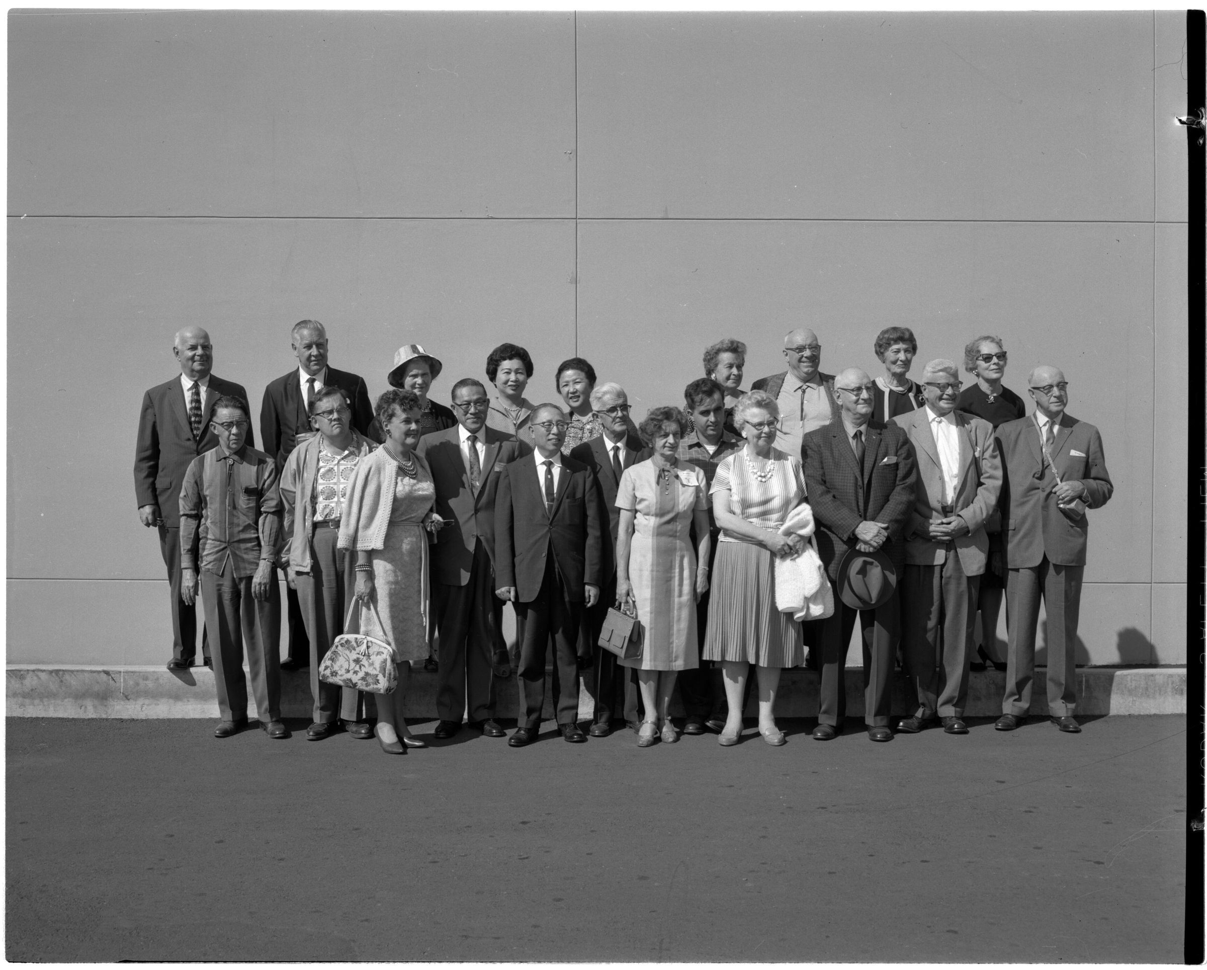 Negative, sheet film. 4 x 5 b&w. No. 915. OB Corp TV. Shriners visit Olympia brewery. No ID on people.