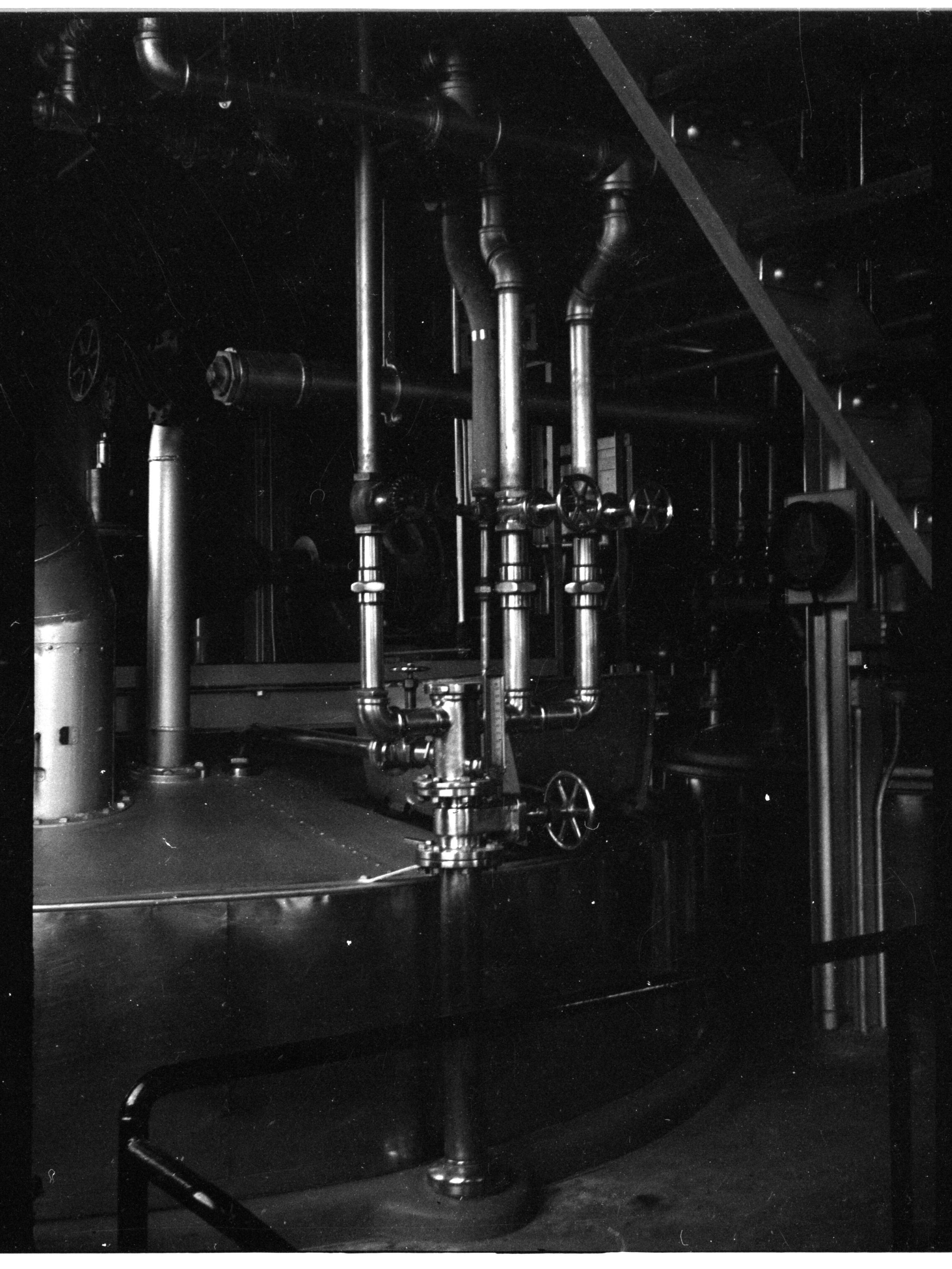 Negative, sheet film. 2 x 1.5 b&w. Brewing vessel, maybe mash tub, inside old brewery.