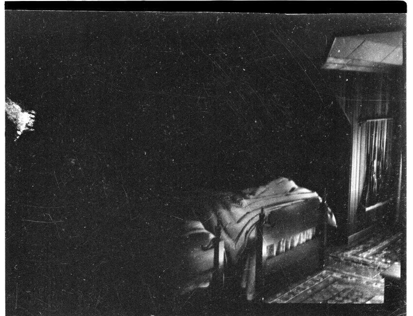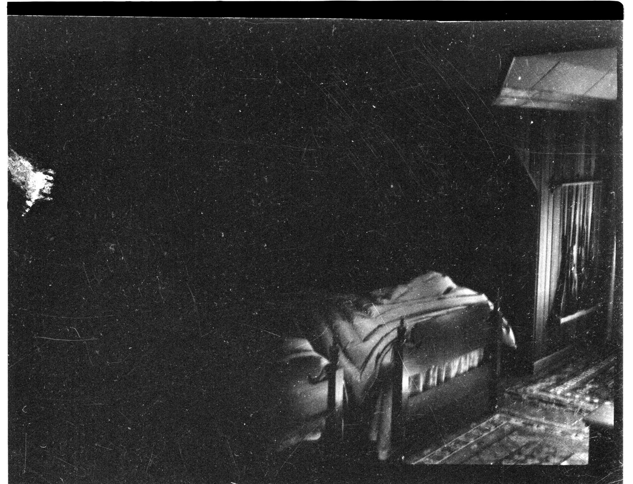 Negative, sheet film. 1.5 x 2 b&w. Bedroom, unknown house, unknown location.