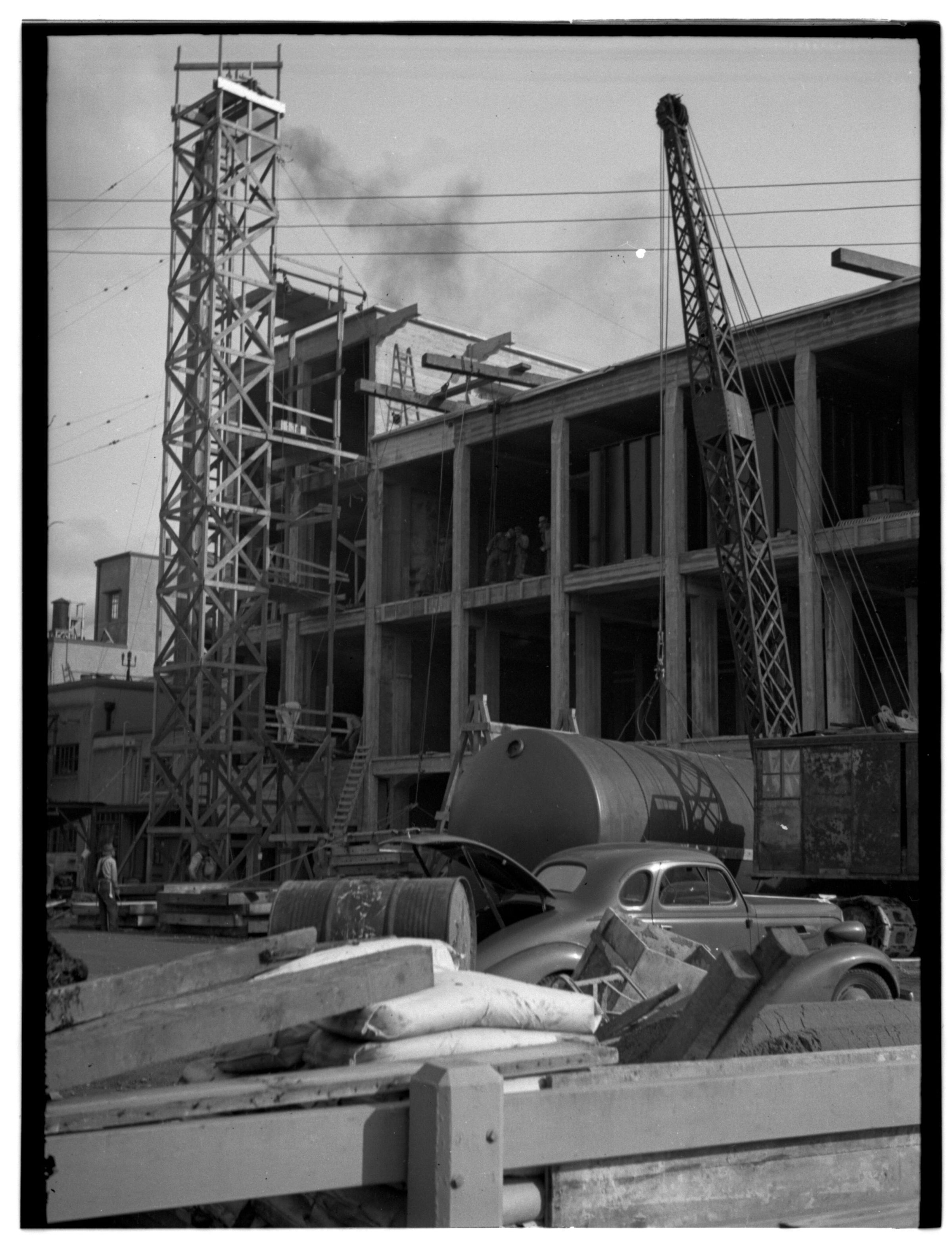 Negative, sheet film. 2 x 1.5 b&w. Brewery construction of a cellar.