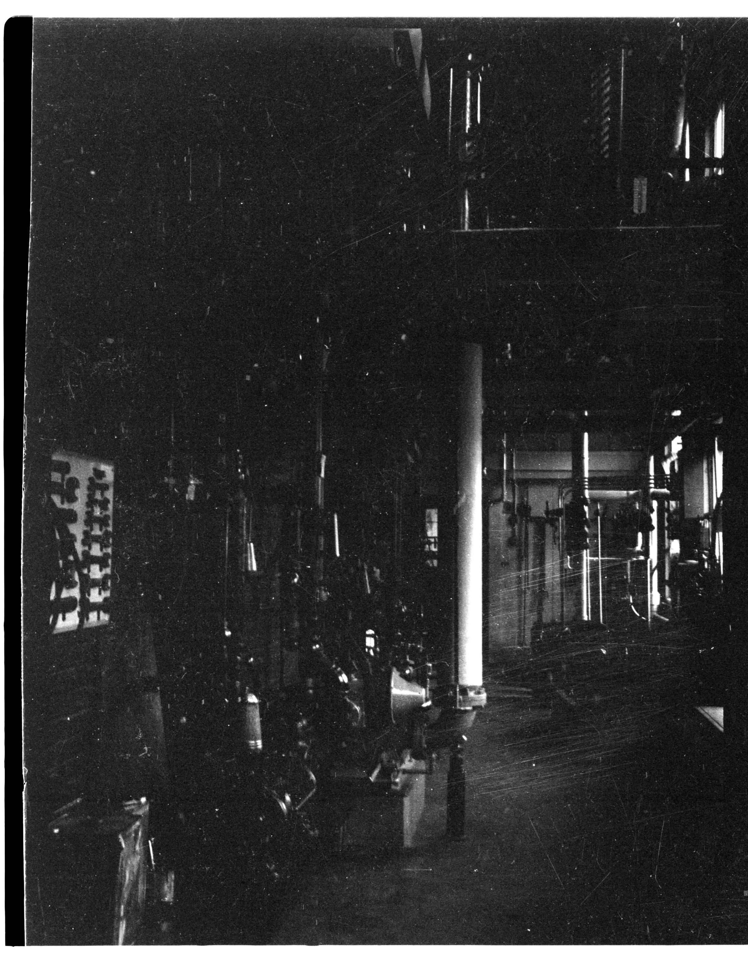 Negative, sheet film. 2 x 1.5 b&w. Brewery, possibly boiler room.