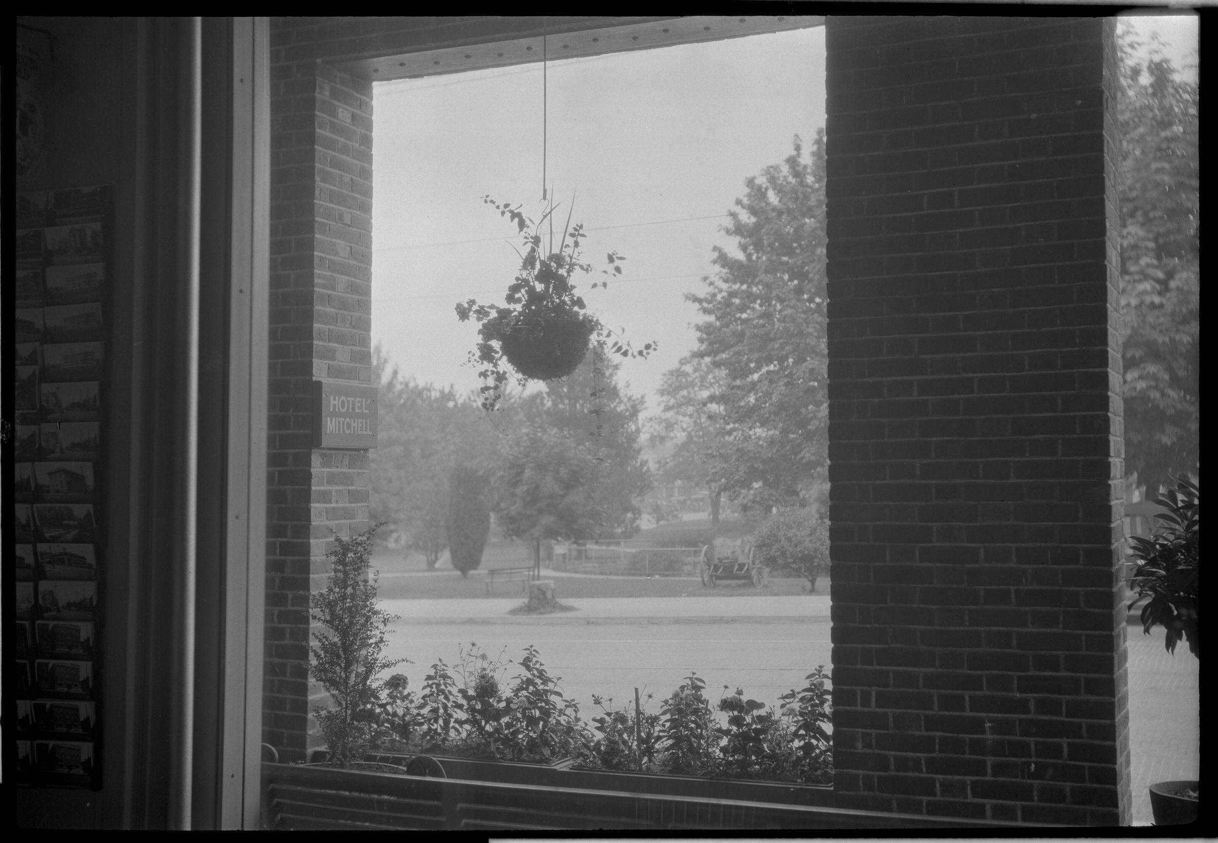 Negative, sheet film. 4.5 x 6.5 b&w. View of Sylvester Park in downtown Olympia WA, probably taken from window of Hotel Mitchell, immediately across Main St from the park.