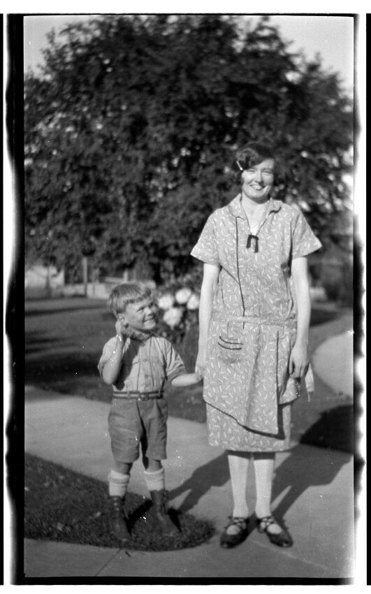 Negative, sheet film. 4 x 2.5 b&w. Peter G. Schmidt Sr. family snapshots. Peter G. Schmidt Jr. (Buzzie) with unidentified woman.