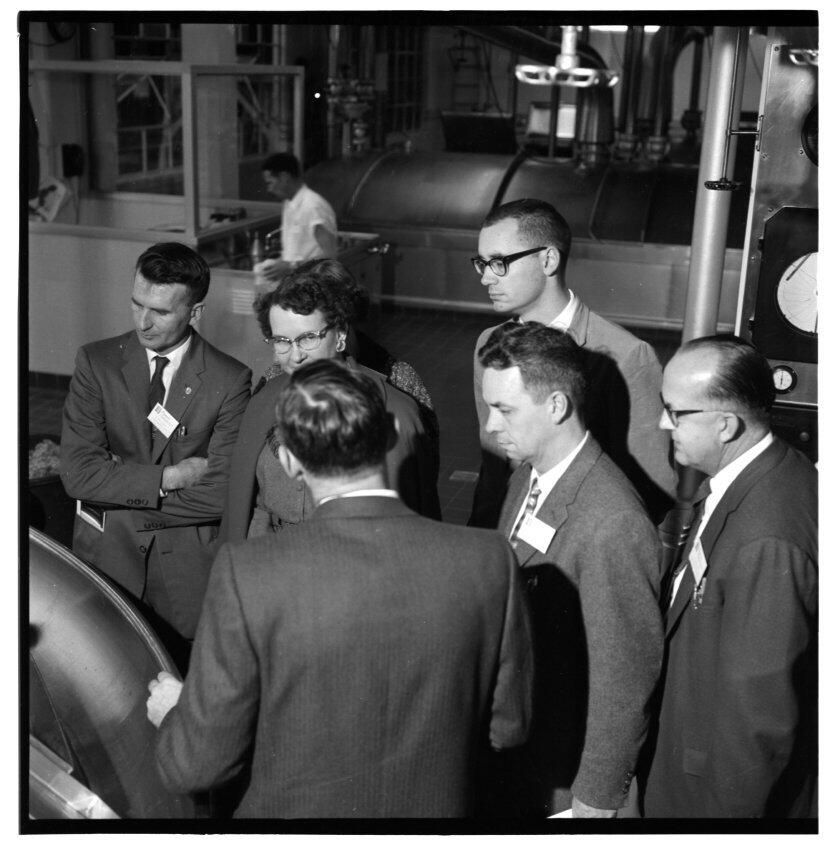 Negative, sheet film. 2 x 2 b&w. No. 693. OB Corp TV. Group of teachers tours the Olympia brewery. Visit was part of Teachers Business Education Day, coordinated by the Olympia Chamber of Commerce. 454 teachers from Thurston County were involved.Name/Title