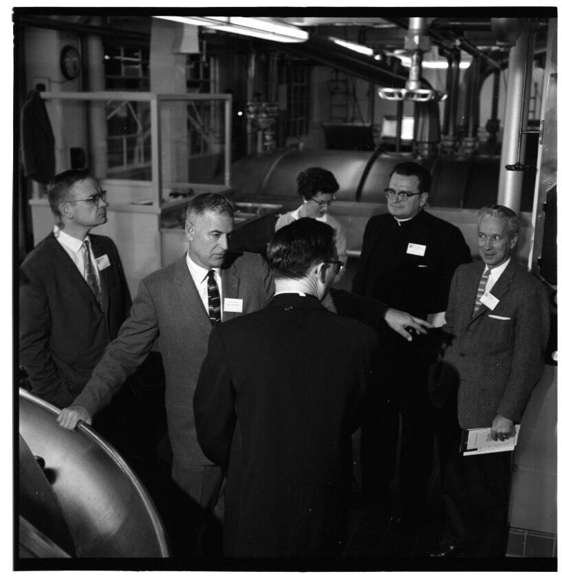 Negative, sheet film. 2 x 2 b&w. No. 693. OB Corp TV. Group of teachers tours the Olympia brewery. Visit was part of Teachers Business Education Day, coordinated by the Olympia Chamber of Commerce. 454 teachers from Thurston County were involved.Name/Title
