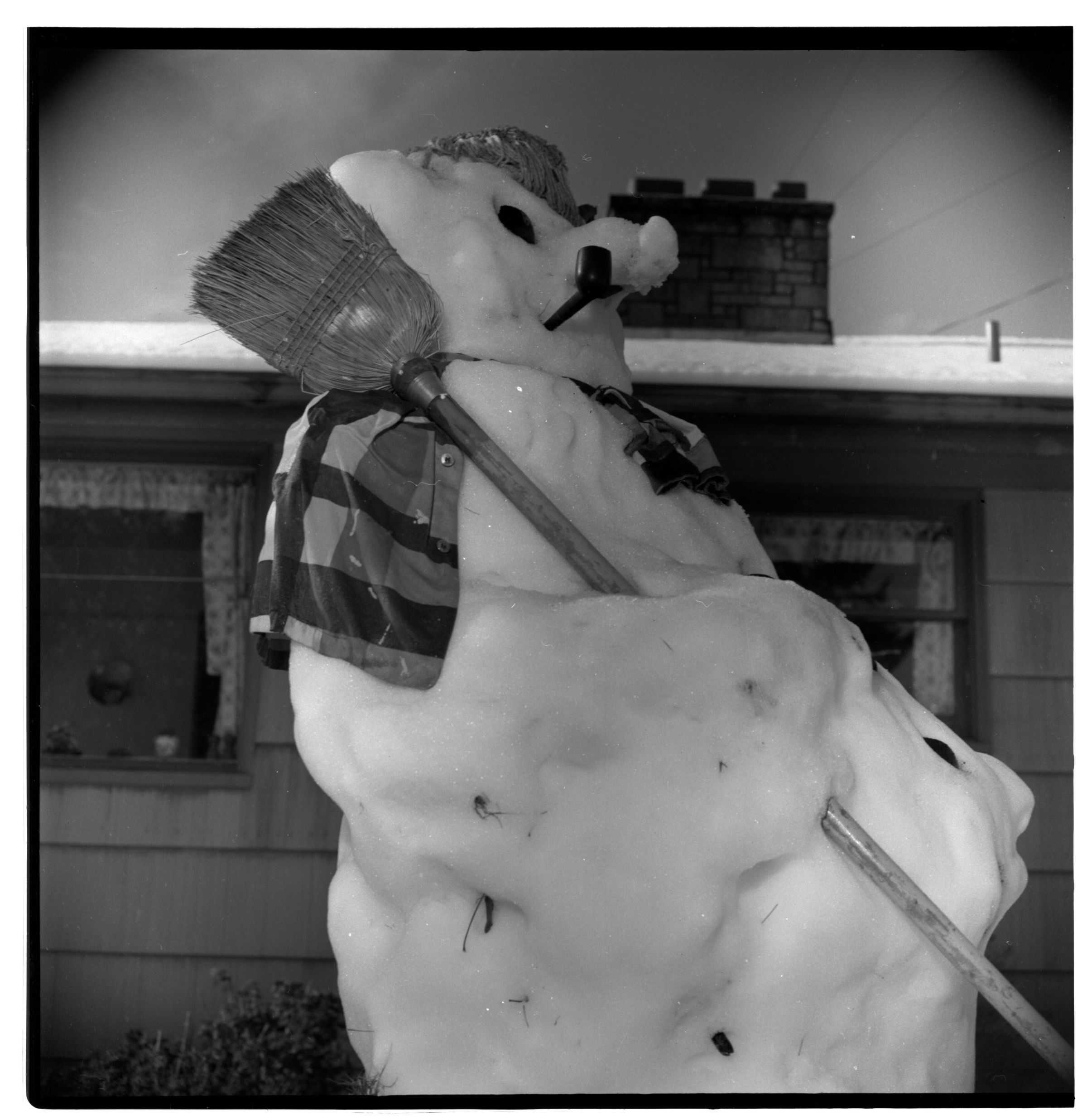 Negative, sheet film. 2 x 2 b&w. No. 781. OB Corp TV. Snowman at unknown location.