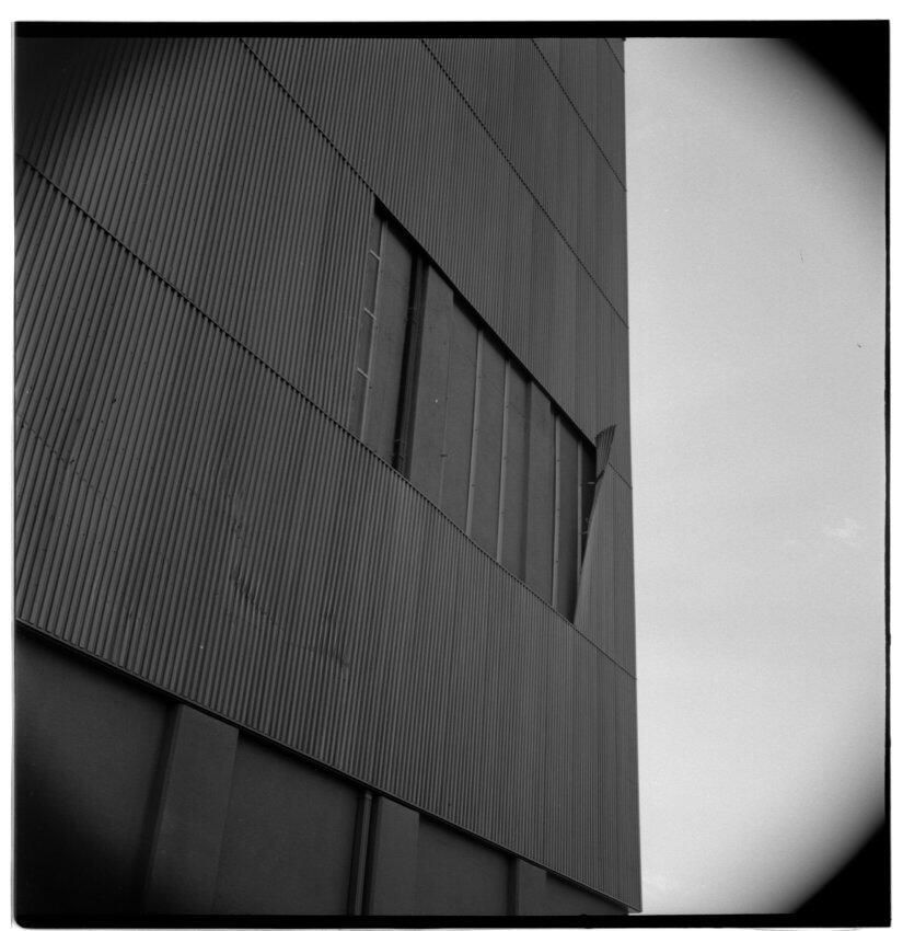 Negative, sheet film. 2 x 2 b&w. No. 916. OB Corp TV. Columbus Day Storm, 1962. Wind storm damage to side of Olympia brewery building.