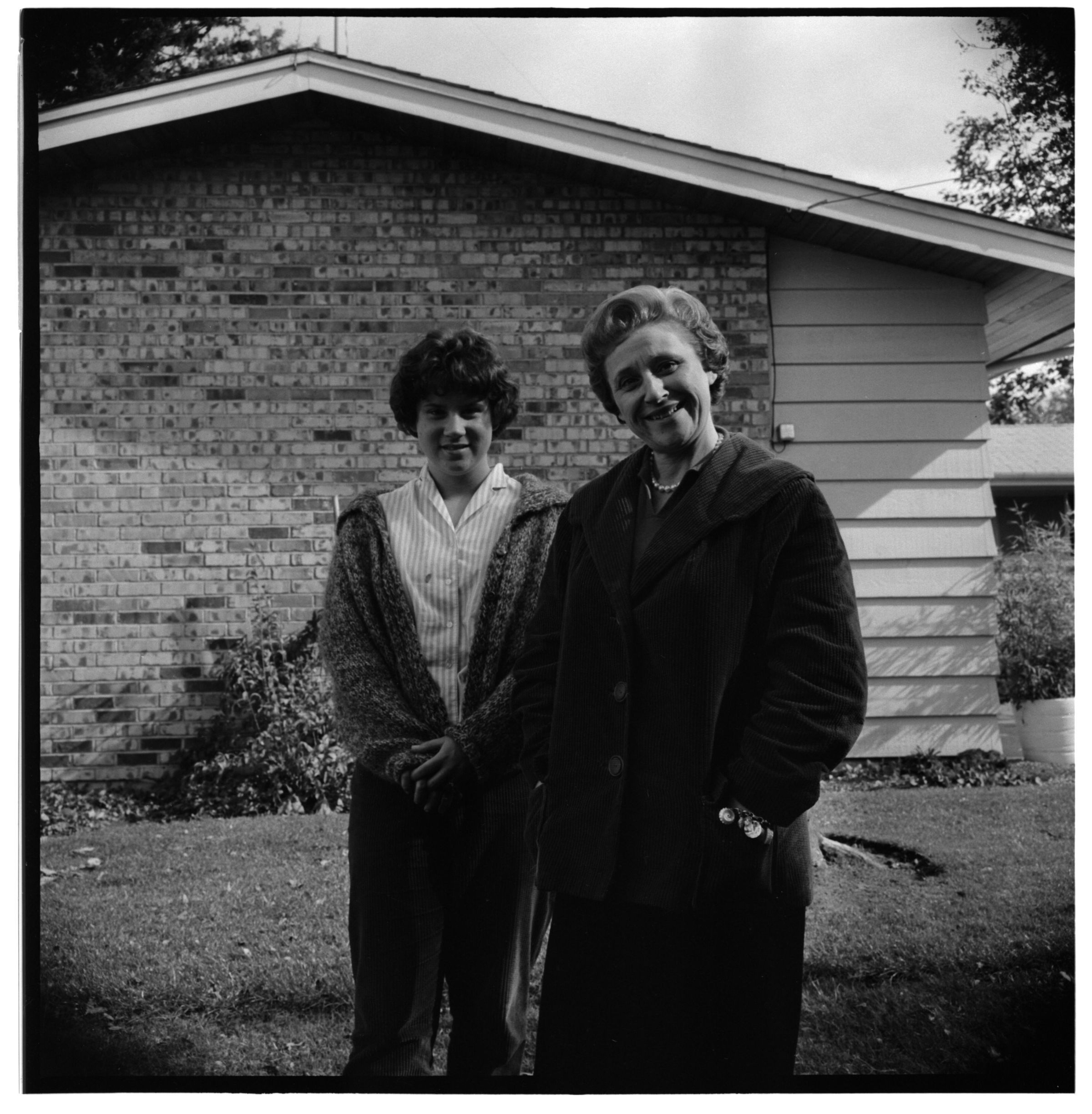 Negative, sheet film. 2 x 2 b&w. No. 916. OB Corp WE. Residents after Columbus Day storm.