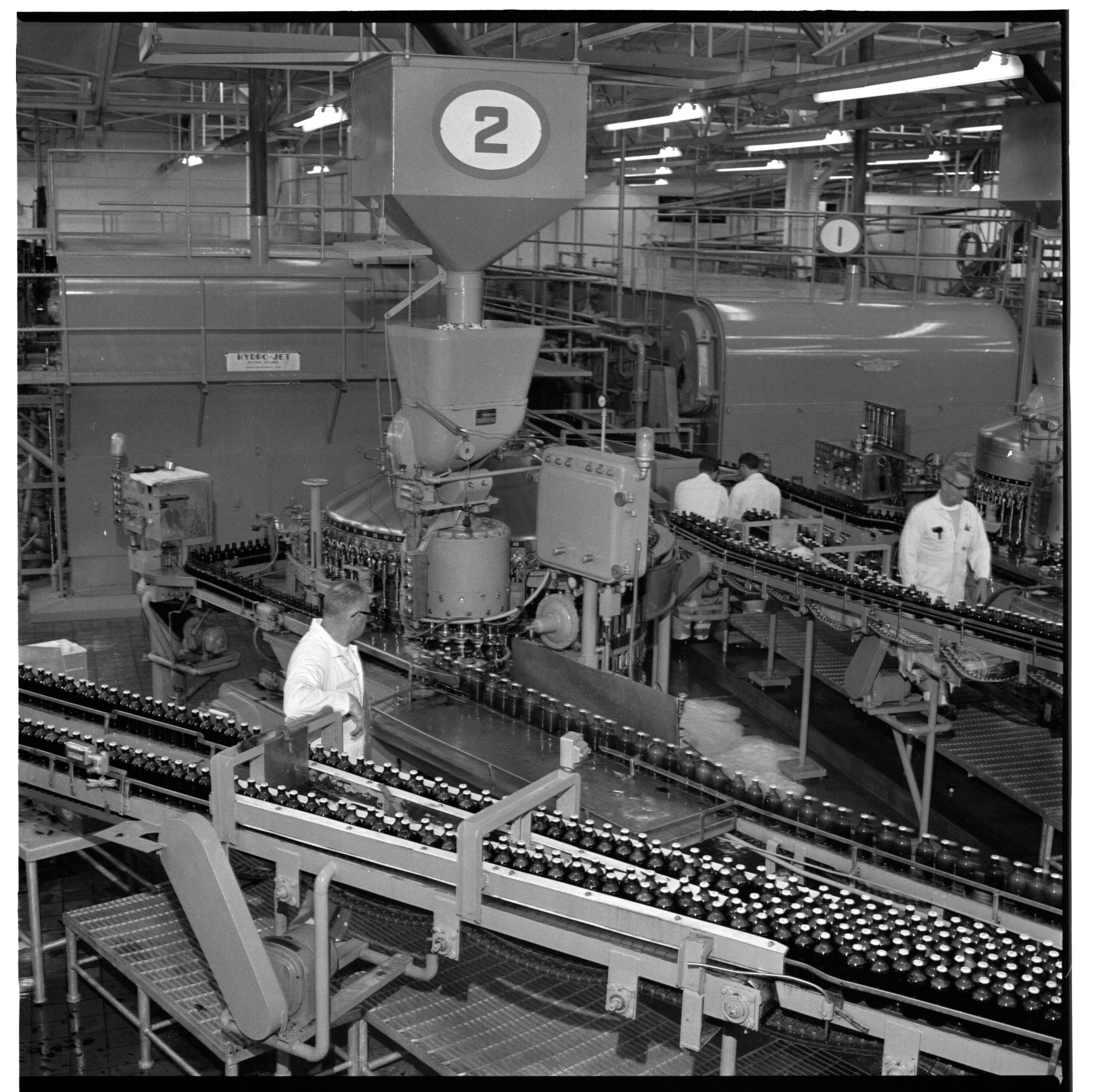 Negative, sheet film. 2 x 2 b&w. Capping machine at St. Paul Brewery.