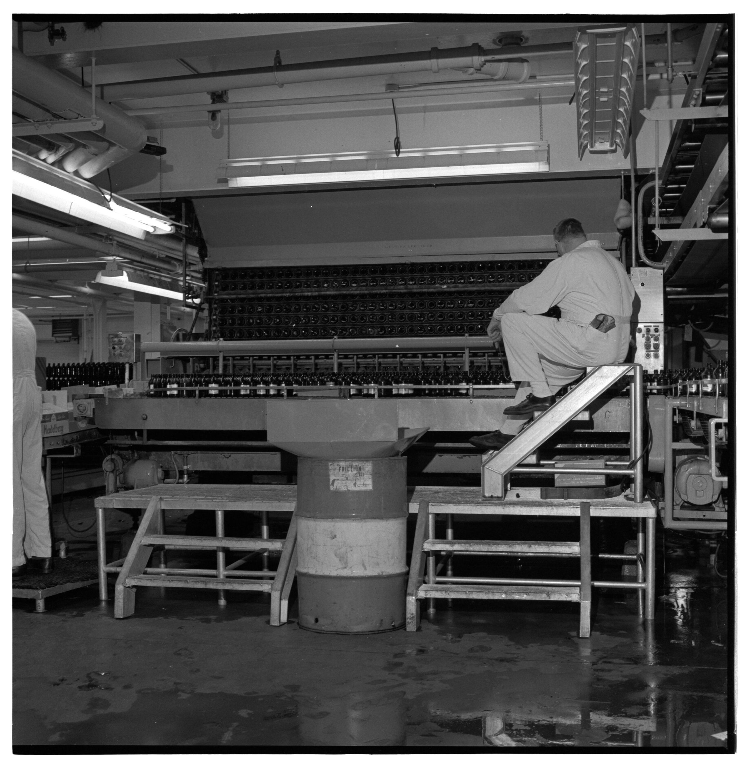 Negative, sheet film. 2 x 2 b&w. Bottle washer/soaker at St. Paul Brewery.