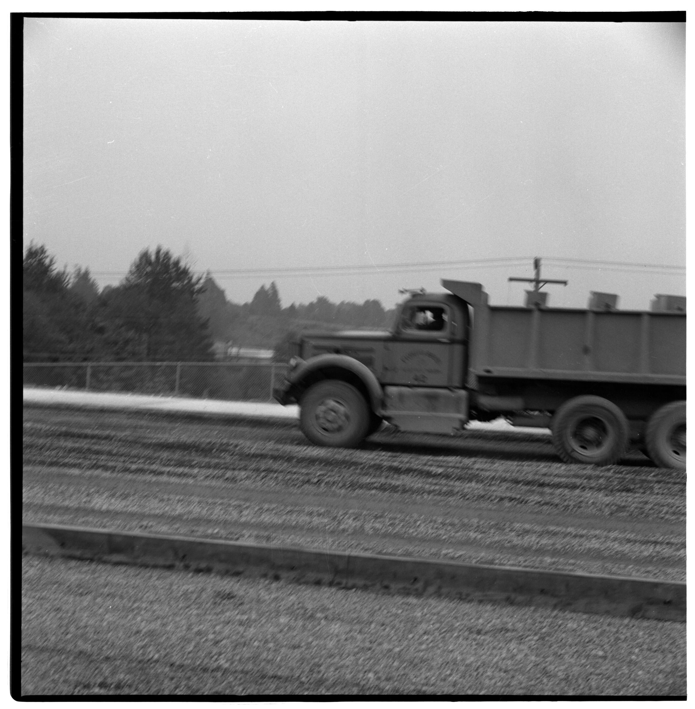 Negative, sheet film. 2 x 2 b&w. Building Interstate 5 freeway around milepost 102, Tumwater.