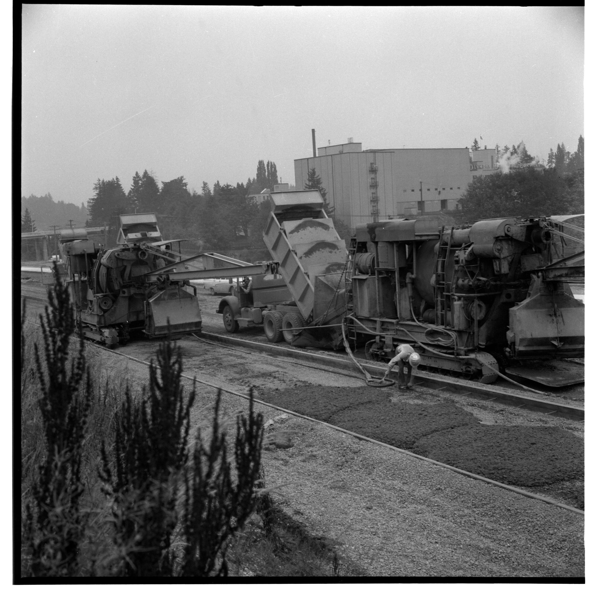 Negative, sheet film. 2 x 2 b&w. Building Interstate 5 freeway around milepost 102, Tumwater.