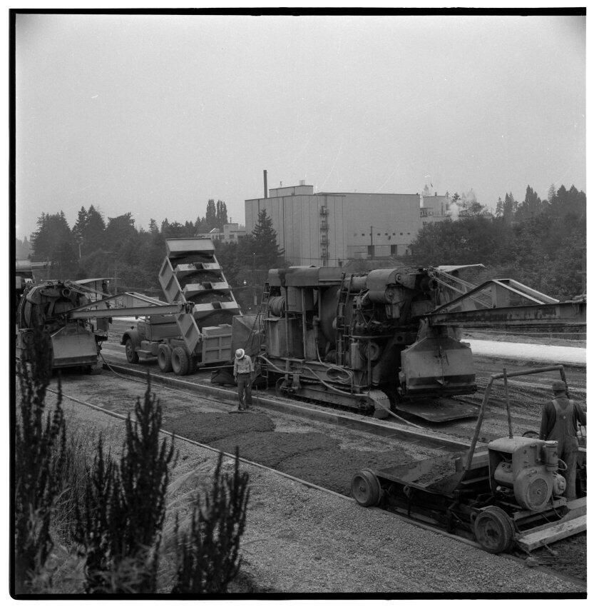 Negative, sheet film. 2 x 2 b&w. Building Interstate 5 freeway around milepost 102, Tumwater.